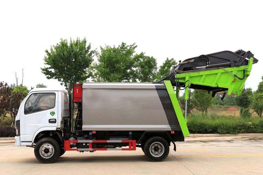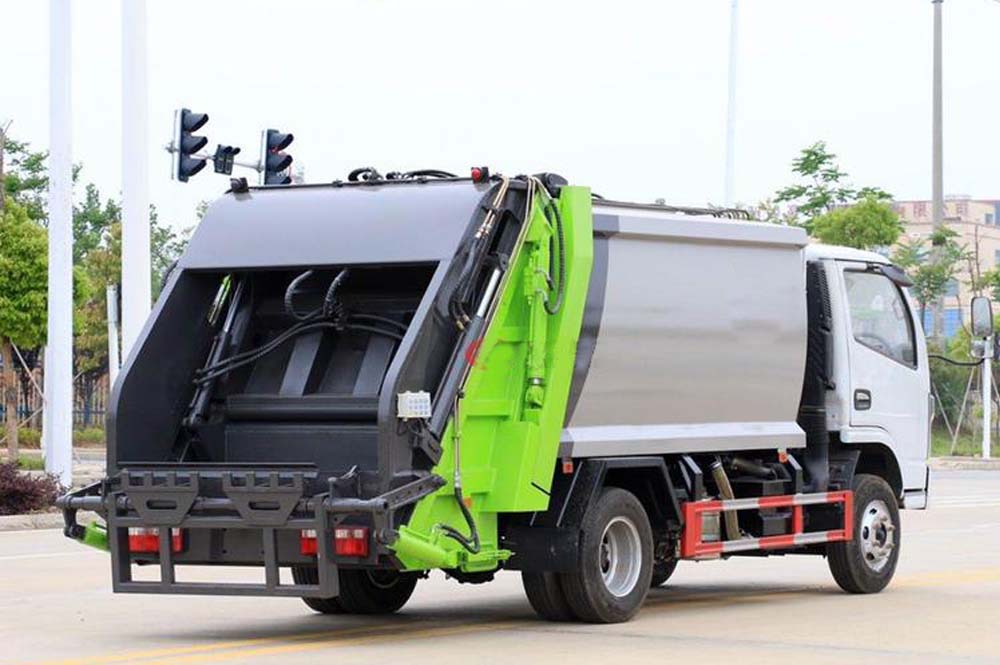 二、上裝配置: 新款平板或弧形箱體,式樣美觀,箱體全滿焊,5-8方箱體厚度邊4底4,10-12方邊4底5,12方以上邊5底5,采用國內著名品牌配件,揚州中煤或合肥長源油泵和液壓多路換向閥、博利或海普瑞斯油缸,杰特高密度液壓油管,帶掛桶或三角斗翻轉進料,翻轉機構可以翻轉國標120、240垃圾桶,帶壓縮推板,后蓋帶液壓鎖緊。PLC一鍵操控系統,可駕駛室內和室外雙電控操作,方便實用。尾部帶密封橡膠墊,污水收集箱,可防污水滴漏二次污染。