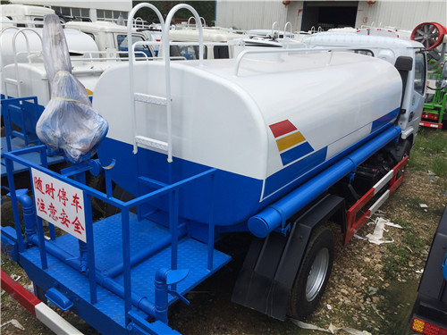 罐體容積5立方米,該車具有免征公告(可免交車輛購置稅)。采用武鋼4mm優(yōu)質(zhì)碳鋼板一次卷壓成型,完全做到無縫成型。罐體內(nèi)設(shè)多道防波隔板,采用高壓氣體試漏檢測,使罐體具有強(qiáng)度高,重心穩(wěn),車輛運(yùn)載安全平穩(wěn)。罐體外表為烤漆,罐體及各保險杠貼紅白色視覺反光條,罐體兩側(cè)噴“綠化灑水車”字樣