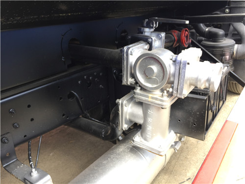排氣管置于大梁下方,將發(fā)動機尾氣有效的排出,避免排氣不及時不徹底導致油缸低速爬行,影響整個車輛的工作效率。
