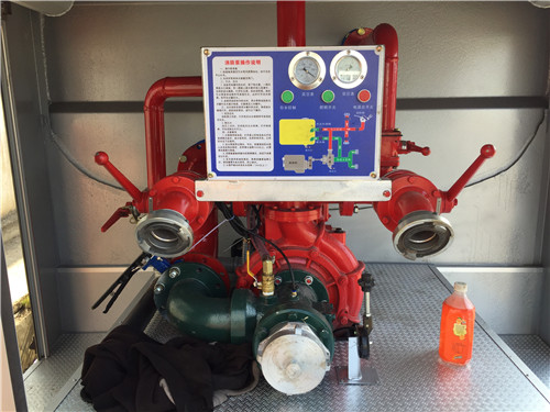 5、消防灑水車操縱系統:主要由發動機帶動變速箱,變速箱上安裝的取力器帶動灑水泵,灑水泵產生動力,將罐體內部的液體通過管網噴灑出往。工作范圍:自吸高度:≤7m,灑水寬度:≥14m,大射程:≥28m;可調節成柱狀,射程≥28m;也可調節成霧狀,射程≥15m。