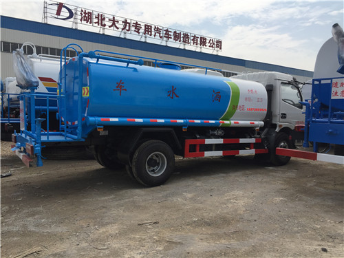第八款不上牌9.5噸東風灑水車底盤采用東風大多利卡(十堰產),3800mm軸距,帶動轉,7.5尼龍?zhí)ィ瑲鈩x,電子熄火。前沖后灑,后工作平臺帶高炮,右位花灑,側噴。罐體9.2噸,金龍泵,前沖后灑,后工作平臺帶高炮,右位花灑,側噴。
