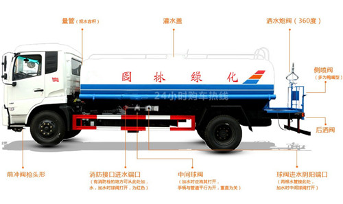 東風御虎多功能抑塵灑水車整車型號:CLW5162GSS4型灑水車,底盤型號:DFA1160LJ10D4,整車外形尺寸:8100,7450×2480×3000 ,罐體尺寸:5000/2100/1350mm、4350/2300/1400mm、這款東風御虎多功能抑塵灑水車罐體容積:12方,11.9方,不同軸距,立方數(shù)不一樣,罐體采用國標碳鋼鋼材制作,帶前噴后灑,側噴,尾部帶平臺及高炮,可以自吸自排,東風御虎多功能抑塵灑水車外形圖片展示如下: