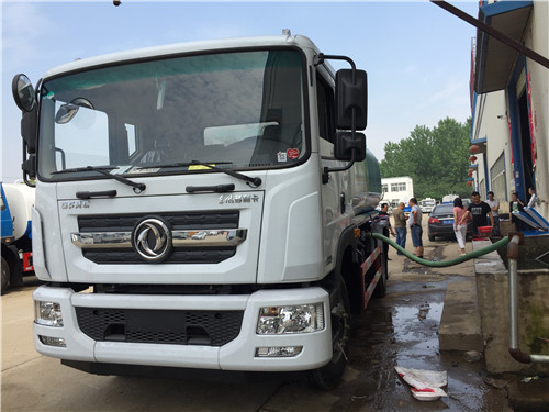 4、東風福瑞卡5噸灑水車的維護與安全:灑水車底盤和發動機部分的使用和保養,按載重灑水車使用說明書執行。水泵的使用和保養,嚴格按其使用維護說明書執行。水源不能有過多雜質,過濾器網應該經常拆洗。冬季來臨前,灑水車應將水泵和水管內的水放空,以防凍裂。灑水車吸水時進水管系統必須保持一定的真空度,才能將水吸入箱內,故進水管系統務必密封可靠.每次工作完畢后,均應將各閥門手柄扳至關閉狀態。各閥門一般不應處于半開狀態,以免影響密封性能。每次工作完畢后,均應及時蓋上進、出口外端的堵蓋。水裝載量不宜超過額定裝載質量。