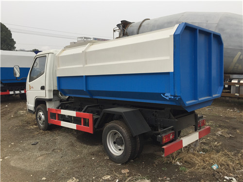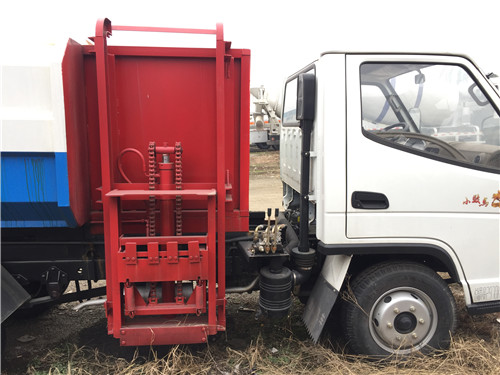 該掛桶式垃圾車的收運方式是目前國內泛采用的垃圾收集轉運方式,其專用裝置的功能均以汽車發動機為動力,通過液壓機構手動或電控、氣控來實現。車輛的箱體采用優質炭鋼板全密封焊接結構,具有強度高、重量輕,防塵、防溢不產生二次污染等優點。