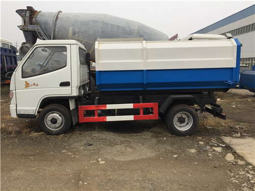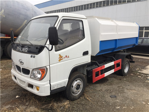 掛桶式垃圾車(以下簡稱垃圾車)是用于城鎮內的垃圾收集、轉運、卸料作業的專用車輛。該車是由汽車底盤、自卸油缸、提升機總成、頂蓋(選裝)、附車架、垃圾箱體等組成。該車操作由液壓控制系統來完成,控制方式可以為手動或電氣控。該車主要用于城鎮垃圾的垃圾收集、轉運和卸料。