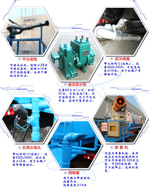 三、抑塵車專用灑水泵吸水管的吸入頭必須浸沒于水下,以免空氣吸入不管。