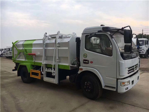 2、掛桶式垃圾車,又叫自裝卸式垃圾車。整個操作駕駛員完全在駕駛室內操作完成,效率高,通常用于街道兩側的垃圾桶內垃圾的收集運用。