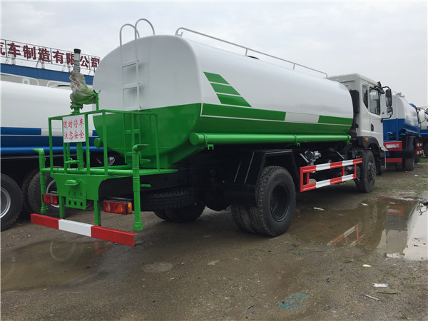 客戶是河南省公路建設(shè)公司,買來灑水車主要是工地上使用,固選擇的15噸大型灑水車,雖是不上牌車型,還是建議客戶選擇馬力大、承載力強(qiáng)的東風(fēng)153底盤,康明斯190馬力,在工地上使用那是杠杠的。輪胎是1000尼龍?zhí)ィ窙r不好的路面,承載力也比較強(qiáng)。