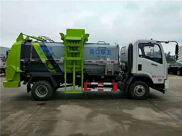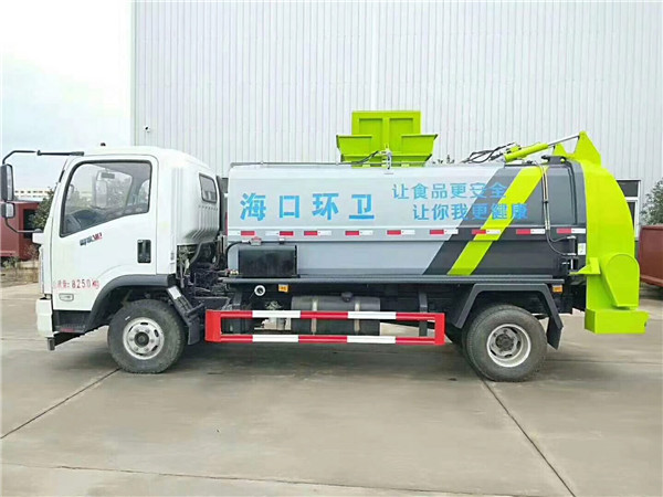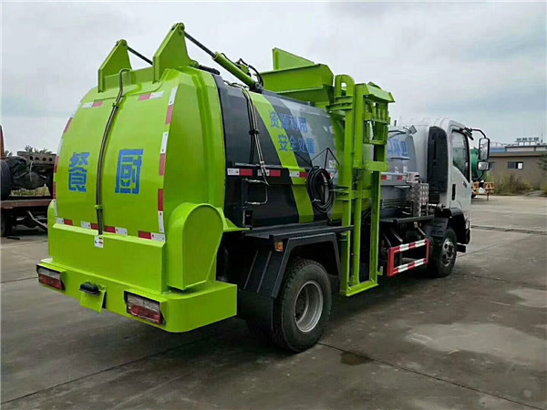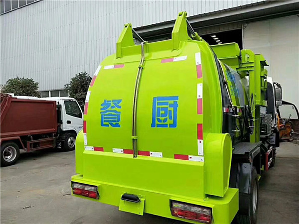 餐廚垃圾車由密封式垃圾廂、液壓系統、操作系統組成。整車為全密封型,自行壓縮、自行傾倒、壓縮過程中的污水全部進入污水廂,較為徹底的解決了垃圾運輸過程中的二次污染的問題,避免了給人們帶來不便,關鍵部件采用進口部件,具有壓力大、密封性好、操作方便、安全等優點。 可選配后掛桶翻轉機構或垃圾斗翻轉機構。