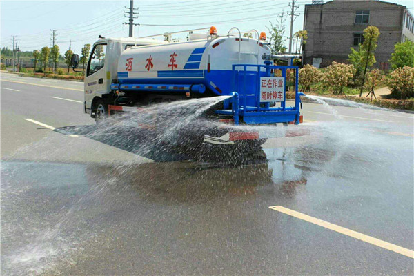 上裝配置:罐體容積:4.5立方(裝水4.5噸),罐體鋼板采用Q235碳鋼鋼材,前沖后灑、側(cè)噴、平臺(tái)高炮、自流閥及消防接頭各1個(gè)、水管2根、標(biāo)配億豐泵或金龍泵,霧炮機(jī)可選裝20-35米,