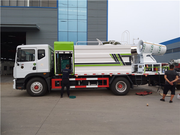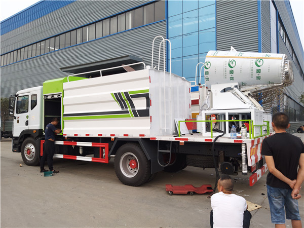 天然氣抑塵車(chē)又稱為:霧炮車(chē)、噴藥車(chē)。霧炮車(chē)噴射的水霧顆粒達(dá)到微米級(jí),能有效分解空氣中的污染顆粒物、塵埃等,在霧霾天氣下用于降塵除霧,可以有效的緩解霧霾,其節(jié)水的特性同樣也可以用作灑水車(chē)使用。霧炮車(chē)還可以降塵、灑水,把樹(shù)上的灰塵洗掉。霧炮車(chē)噴灑出的水霧與懸浮在空氣中的PM2.5和PM10粉塵顆粒吸附、聚合、沉降,達(dá)到消除污染物和減霾的目的。盡管霧炮口徑巨大,但其噴灑耗水量?jī)H為傳統(tǒng)灑水車(chē)的兩到三成,覆蓋面積和除塵效率卻高出20倍。既提高效率,也避免路面積水影響交通。