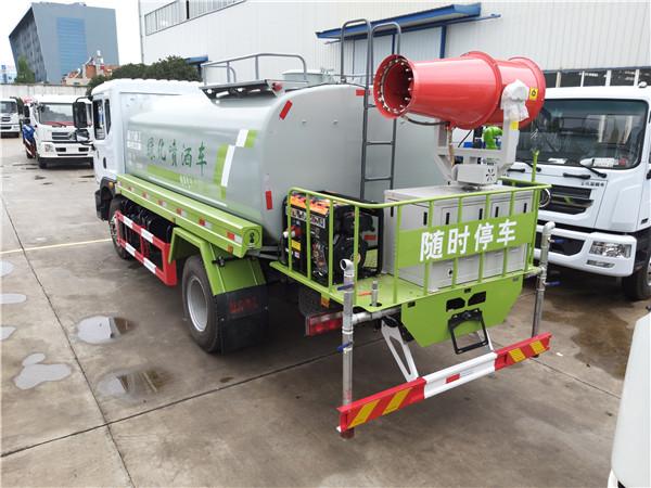 東風多功能灑水車,東風公司原裝加強型底盤,底盤型號:EQ1070GJ9AD3,發動機型號:YN38PE2,云內柴油環保發動機,EGR國六排放標準,120馬力,采用8.25尼龍胎,駕駛室帶臥鋪,可翻轉,帶方向助力,斷汽剎。該車做罐體容積為6立方,優質武鋼鋼材制作,多功能灑水車專用功能:前沖(噴)、后灑、帶側噴(花灑)、帶后工作平臺、平臺上安裝綠化灑水高炮(炮噴射形狀可調節:直沖、大雨、中雨、毛毛雨、霧狀、可連續調節,3600旋轉),配消防接口,自流閥,濾網,帶自吸自排功能。