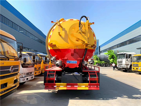 而東風天龍清洗吸污車帶副發則可以通過升舉罐體,打開后蓋的方式直接排污,沒有排放殘留,不需要清理罐體。如果長時間不用車,為了減少罐體的腐蝕,需要將罐體內部沖洗干凈。東風天龍清洗吸污車帶副發沖洗罐體內壁是,需要人進入罐體內,用水來沖洗罐體內壁。而東風天龍清洗吸污車帶副發在沖洗罐體內壁時,可以在打開罐體后蓋后,就站在罐體外面利用水龍頭沖洗就可以了。
