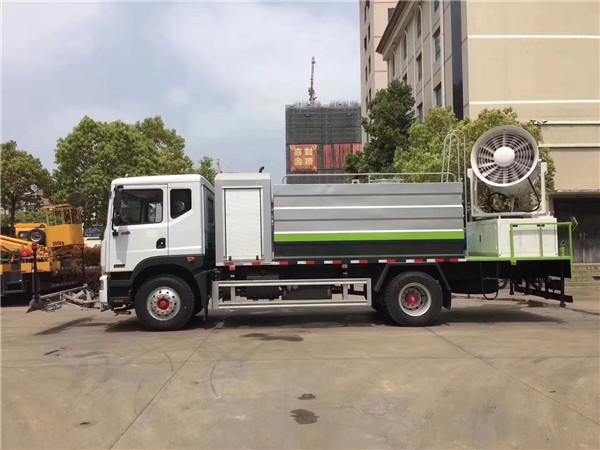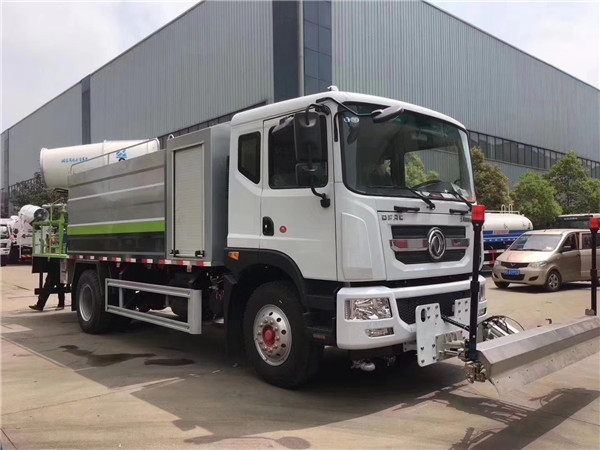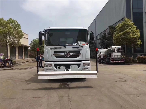 東風多利卡D9路面灑水車推薦;東風D9國五底盤,4500MM軸距。罐體9.5立方米,江鈴77馬力副發動機、德國品孚高壓泵,帶低壓泵前沖,后灑,高炮,車輛帶作業平臺(平臺帶高射水槍),車頭前帶高壓沖洗支架,支架可伸縮清洗寬度3.5米,20m高壓沖洗卷盤,清洗壓力10MPa。