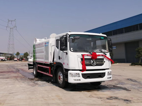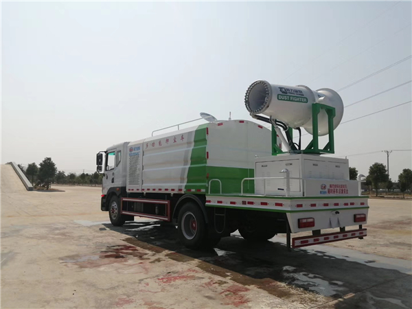 東風霧炮灑水車,是根據東風天龍底盤進行改裝的霧炮灑水車, 再對霧炮灑水車尾部進行霧炮加裝,這種霧炮灑水車集灑水、噴藥于一體,由電腦全程控制,噴射距離長達100余米,對噴射面積大、距離長、樹木高的綠化是最大優勢,而且可以提高幾倍的效率。