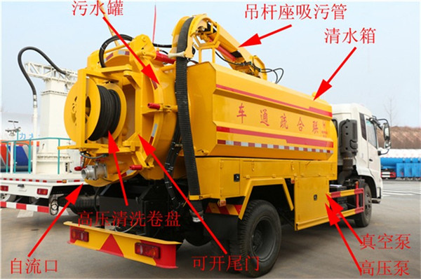 高壓清洗吸污車關鍵元件都是真空泵,利用真空泵工作產生的壓力差進行抽污。高壓清洗吸污車采用圓形罐體,后部可以開啟,使用液壓缸舉升罐體進行排污。結構較簡單,采用橢圓形的罐體,后部封頭密封,利用真空泵產生的壓力排污。