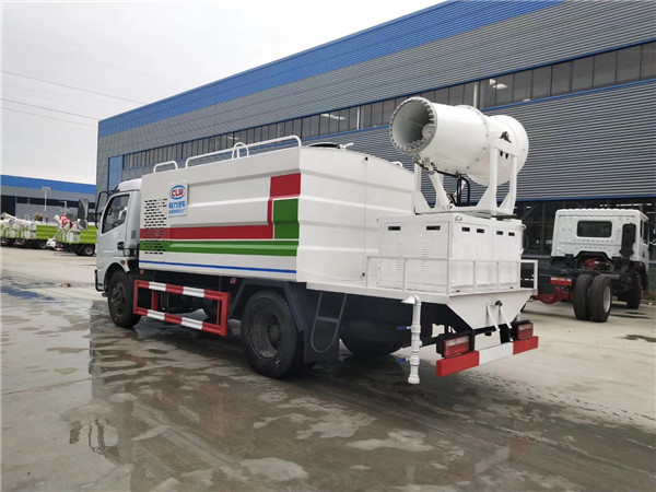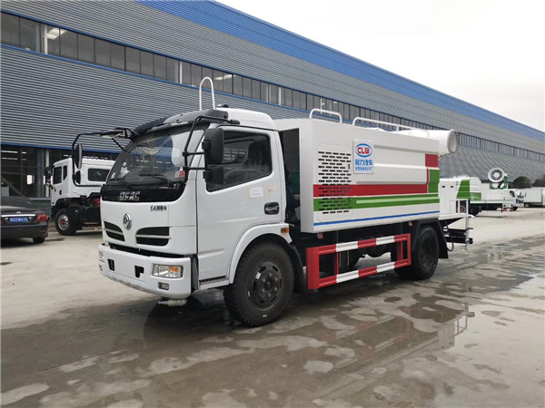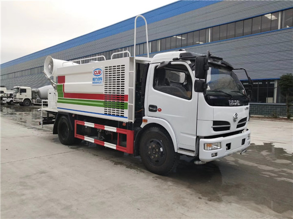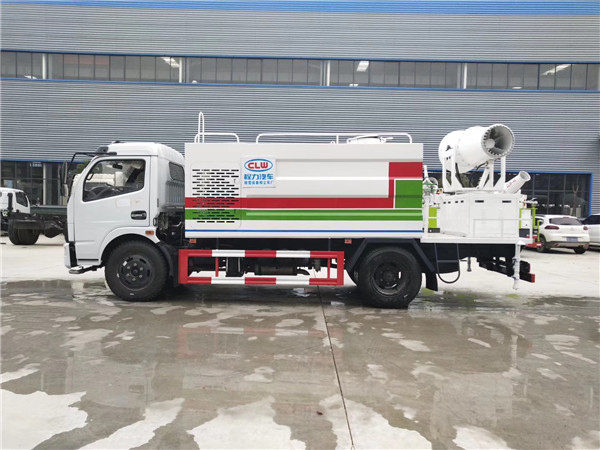 東風5噸抑塵車后灑:后部左右各安裝一個圓柱噴頭;各個進出水孔及操作部位要有指示說明,保證噴嘴噴出的水為均勻的扇面形。自動控制采用駕駛室內撬板開關控制,并粘貼標識,操作按鈕固定牢固。