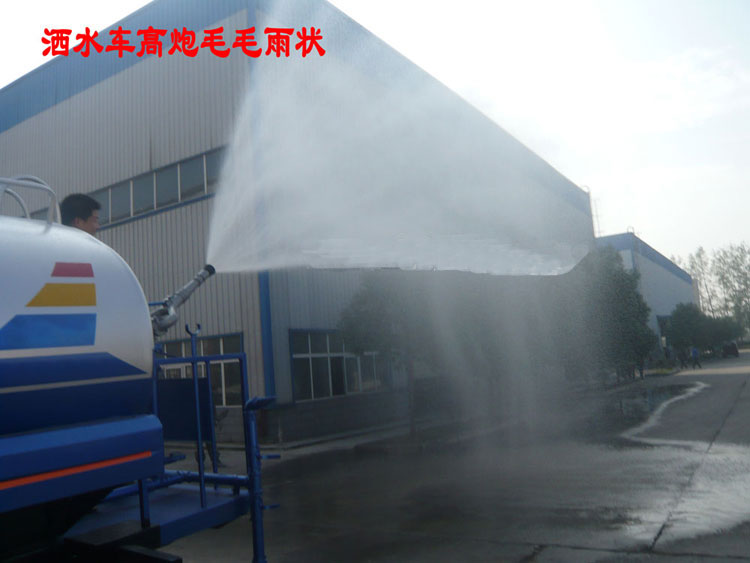 ◆ 灑水車綠化炮功能:綠化高炮位于灑水車的后工作平臺,可360度全方位旋轉,并可調節多種直沖狀、大雨、小雨、毛毛雨、霧狀噴灑、噴射方式--(柱狀射程≥28m;霧狀射程≥15m)。綠化炮霧狀噴灑可用于園林綠化噴灑作業;綠化高炮噴射一般用于沖洗澆灌樹木;綠化炮沖洗一般用于護欄沖洗、高空建筑物沖洗等.