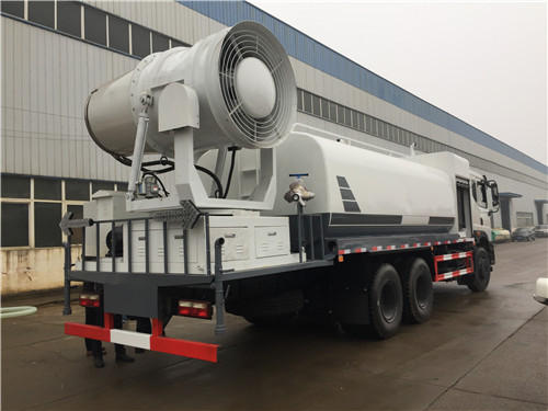 7、重汽100米多功能抑塵車后灑:后部左右各安裝一個圓柱噴頭;各個進出水孔及操作部位要有指示說明,保證噴嘴噴出的水為均勻的扇面形。自動控制采用駕駛室內撬板開關控制,并粘貼標識,操作按鈕固定牢固。